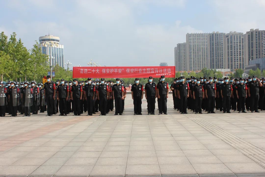 為進(jìn)一步加強(qiáng)保安行業(yè)宣傳,提升保安行業(yè)形象,激發(fā)保安員全力投入常態(tài)化疫情防控和搶險(xiǎn)應(yīng)急各項(xiàng)工作中,德州市恒威安保服務(wù)有限公司支部書記、總經(jīng)理王新衛(wèi)高度重視,根據(jù)區(qū)公安分局要求提前制定出工作實(shí)施方案,并召開會(huì)議對(duì)此項(xiàng)活動(dòng)進(jìn)行具體部署安排。于7月23日上午聯(lián)合其它安保單位在市中心廣場(chǎng)舉辦了“喜迎二十大、保安護(hù)平安”保安行業(yè)主題宣傳日活動(dòng)。此次活動(dòng)由市、區(qū)公安局領(lǐng)導(dǎo)、公司總經(jīng)理、部門負(fù)責(zé)人及保安員共300余人參加。
