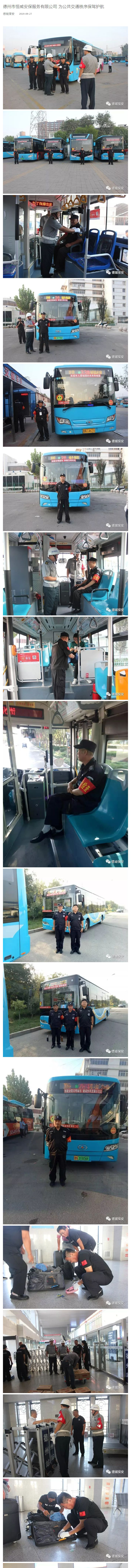 為切實(shí)做好新中國成立70周年慶?;顒悠陂g的安全保衛(wèi)工作,保護(hù)好乘客的生命財(cái)產(chǎn)安全,讓國慶期間公交治安環(huán)境正常有序,德州市恒威安保服務(wù)有限公司在總經(jīng)理王新衛(wèi)領(lǐng)導(dǎo)下,整合多部門人員力量,召集精干保安104人次,圍繞“防風(fēng)險(xiǎn)、保安全、迎大慶”,開展(自9月26日至10月2日)為期七天的公交安保任務(wù)。執(zhí)勤中保安人員認(rèn)真落實(shí)執(zhí)勤方案和應(yīng)急預(yù)案,努力實(shí)現(xiàn)公交安保工作多面覆蓋、無縫對接,讓各項(xiàng)措施落實(shí)到位,公司督查科對公交安保及火車站安檢工作進(jìn)行督導(dǎo)檢查。